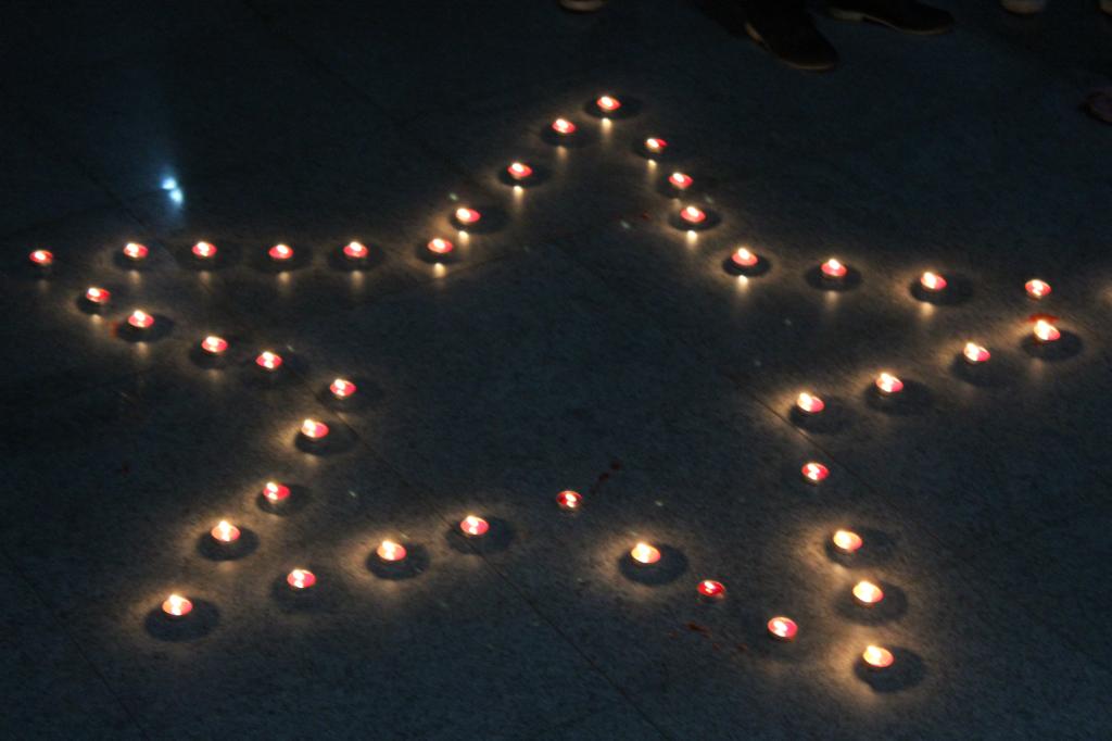 本次活动分为线上和线下两个部分,线上,建立革命先烈网上纪念馆,进行为期三天的网上祭奠;线下,4月3日晚在喷泉广场举行默哀活动,晚上八点,同学们在喷泉广场集合,用事先准备的蜡烛摆出五角星造型。同学们在五角星前庄严宣誓,默哀三分钟,以此来表达对革命先烈缅怀之情。