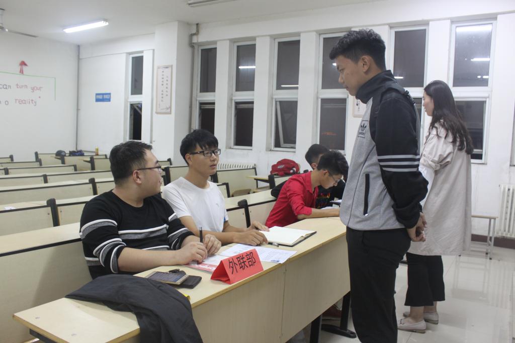 招新工作进行得井然有序,各个部门都本着“公平、公开、公正”的原则对待每一位面试员工。各部门通过面试员工的简短介绍,现场回答问题等方式,考察面试者的表达能力、应变能力、心理素质、组织协调能力、团队精神等方面的基本素质。面对着各个部长的考验,新生们的表现各异:有的从容淡定不慌不忙,有的镇定自如诚心相对,也有的过分紧张,但大家都竭尽全力展现出更好的自己。