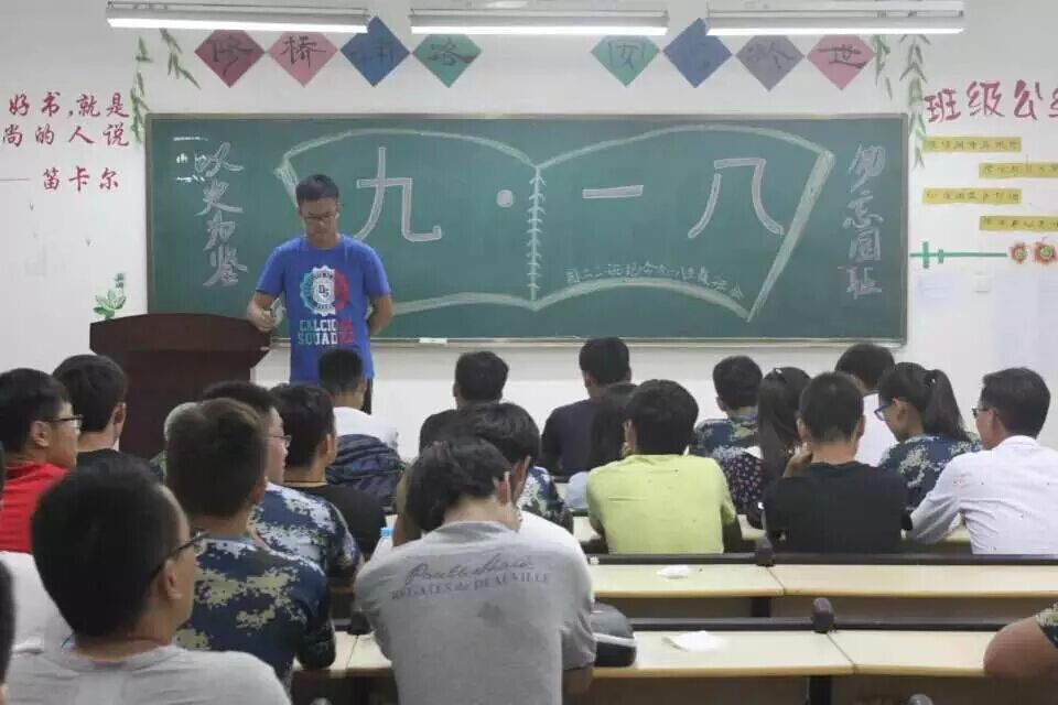 9月18日晚上七点,班会正式开始,本次班会将大一各班同学分为三个小组,分别从整个“九一八事变”的起因、经过、结果展开讨论,并派出代表向同学们分享心得体会;然后,大一辅导员老师结合以上材料,立足于当前,教育同学们要铭记历史,发奋图强,振兴中华。最后,在激昂澎湃的国歌声中,今天的班会活动成功的落下了帷幕。