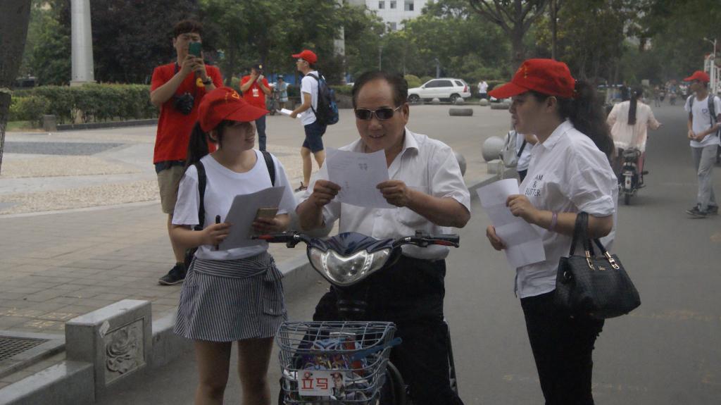 下午两点,队员们到达鹰城广场,进行交通安全知识宣讲,同时向来往的市民发放交通安全知识宣传页,耐心讲解宣传页内容,提醒市民遵守交通规则,文明出行。并与中国公益在线记者一起配合平顶山市交通民警管理来往车辆,纠正市民的交通违规行为,用真诚的微笑和耐心的劝告,服务大众。活动最后,队员们组织市民开展了横幅签名活动,倡导市民树立“绿色交通 安全出行”意识和决心。