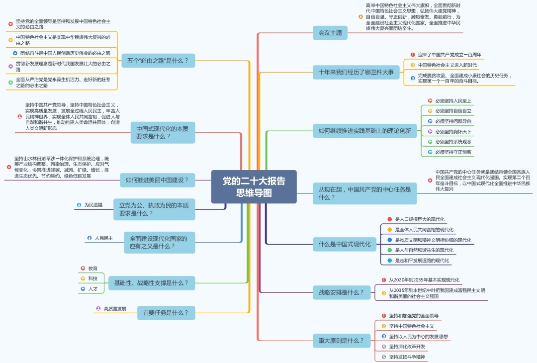 员工党员通过学习研读党的二十大报告,亲手设计绘制党的二十大精神思维导图,经过层层筛选最终涌现出了一批优秀的作品,一幅幅绘制精美、简洁工整、思路明确、环环相扣的思维导图,这都是大家的学习成果。同学们亲手绘制的党的二十大工作报告思维导图作品不仅体现了学习党的二十大报告的体系及脉络,同时展现思维导图作品的艺术魅力。员工们纷纷表示,此项活动的开展激发了大家自觉学习的主动性,加深了对党的二十大精神的理解。