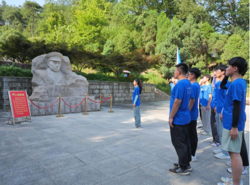 图为实践团成员在许世友将军雕像前进行入党誓词宣誓